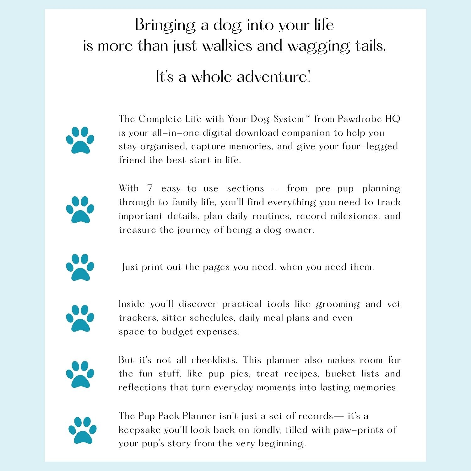 The Complete Life With Your Dog™ System™ takes everything from the checklist and gives it a permanent, structured home. So nothing is lost, forgotten, or scattered.